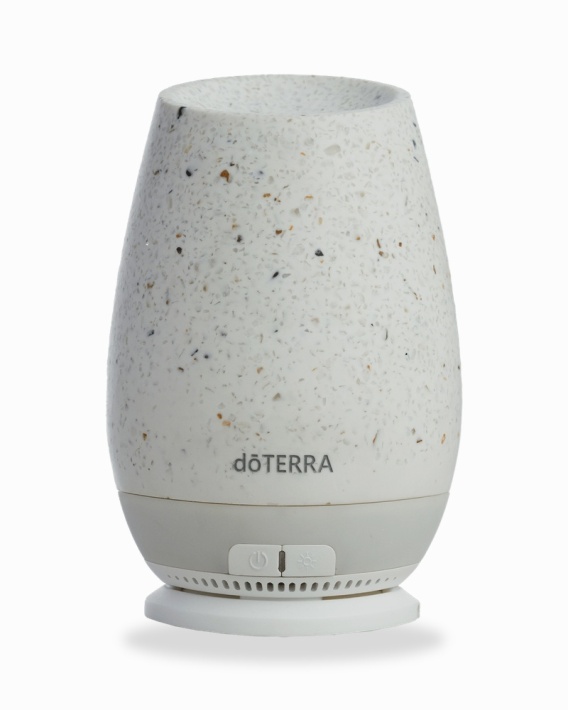 Dyfuzor dōTERRA Roam to eleganckie, przenośne urządzenie o unikalnej obudowie z naturalnego kamienia i ekologicznej żywicy z recyklingu. Dzięki wbudowanemu akumulatorowi działa bezprzewodowo, umożliwiając aromaterapię w dowolnym miejscu - w domu, biurze lub w podróży.